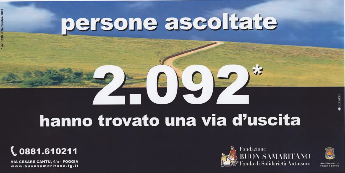 La campagna è stata realizzata da: Fondazione Antiusura Buon Samaritano di Foggia, Arcidiocesi di Foggia-Bovino, Caritas Diocesana di Foggia-Bovino, in collaborazione con Banca di Credito Cooperativo di San Giovanni Rotondo.